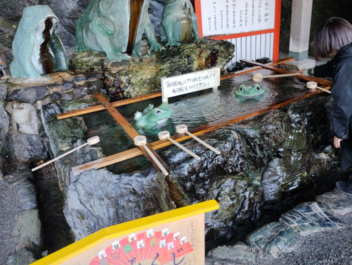 2025/11/16(日)二神輿玉神社 旅行歴史 二見浦にある二神輿玉神社へ 有名な「夫婦岩」がある 伊勢湾に面した神社だ なぜだか、ここには カエルの置物がたくさんある 御祭神・猿田彦大神の使いが「蛙」なんだと。。 まあ、割と「蛙」は好きなので こういう土産も買ってしまった